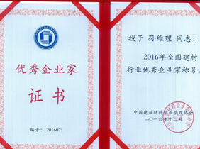 新年伊始,捷報頻傳! 孫維理董事長榮獲中國建筑材料企業(yè)管理協(xié)會頒發(fā)的“2016年全國建材行業(yè)優(yōu)秀企業(yè)家稱號”。...